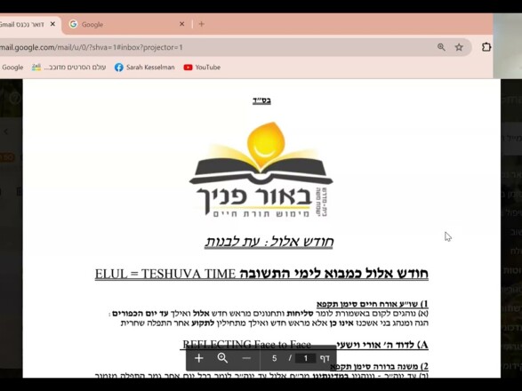 בית מדרש באור פניך -הרבנית שושנה יודלמן 09.09.2024